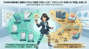 PMBOKには、EEFと対比される概念として「組織プロセス資産(OPA)」がありますが、OPAが「組織の過去のノウハウやテンプレート(=活用できる武器)」であるのに対し、EEFは「従わなければならないルールや環境(=乗り越えるべき制約)」という違いがあります。